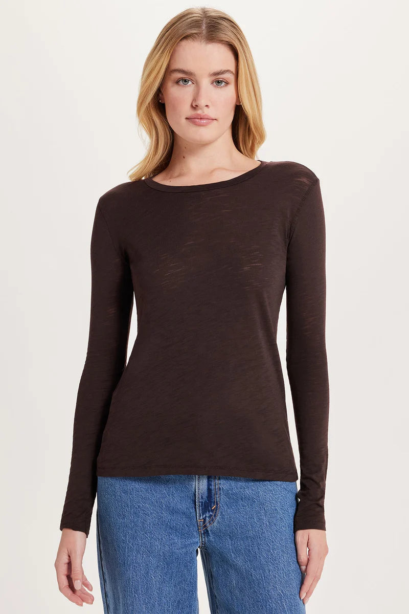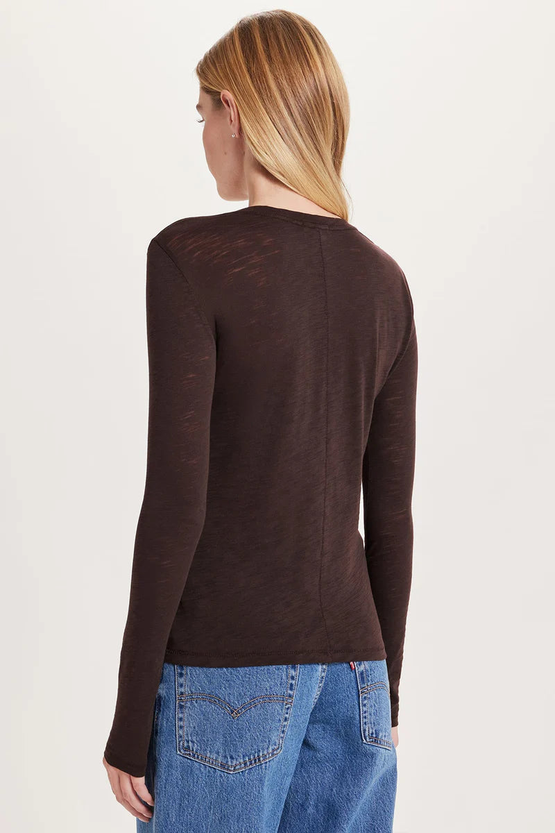 Effortless charm: our quintessential crew-neck tee with extra-long sleeves and a vertical railroad-stitch seam in back. Wear alone or under a warm layer in cooler weather.