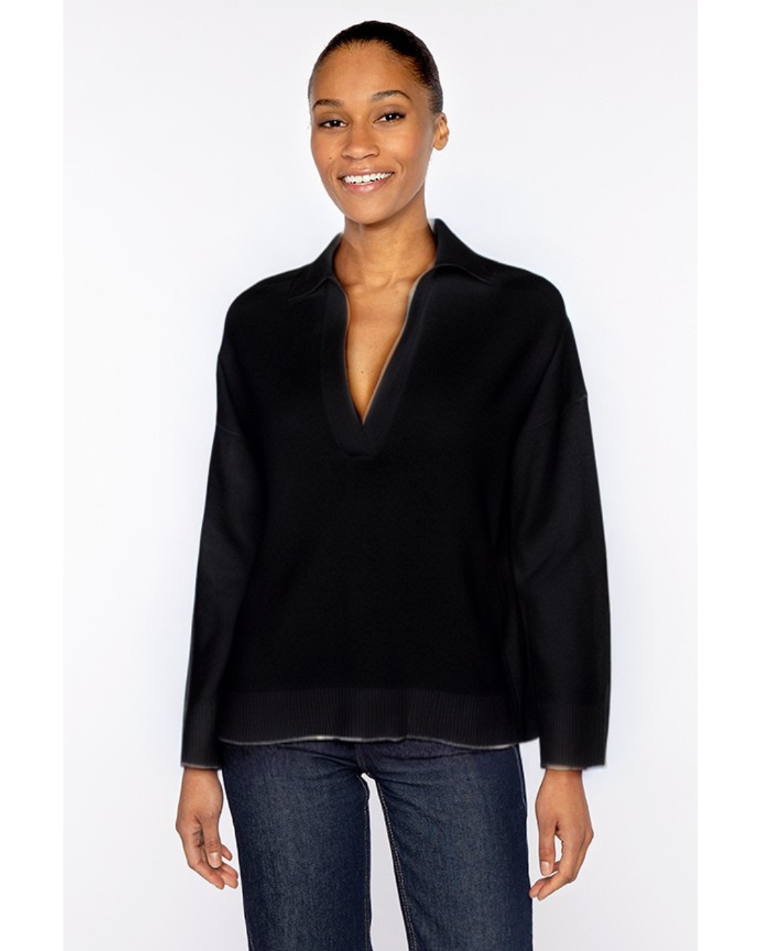 KINROSS CASHMERE DOUBLEKNIT SPLITNECK POLO