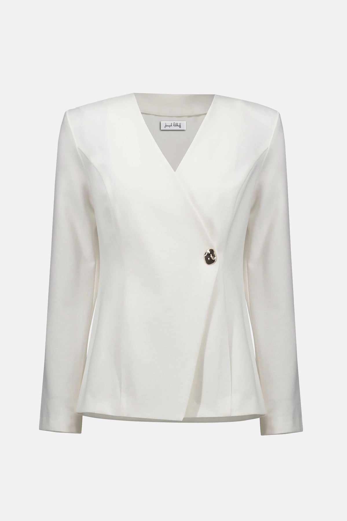 Reveal your passion for sophisticated design in this heavy-knit jacket. The fitted silhouette and V-shaped neckline pair perfectly to create a flattering look. The front cross closure adorned with a chic gold button accentuates the piece’s timeless appeal.