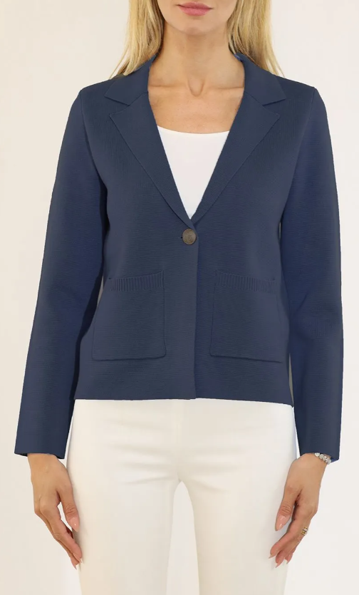 METRIC KNITS SHORTER LENGTH BLAZER W/ONE BUTTON AND PATCH POCKETS