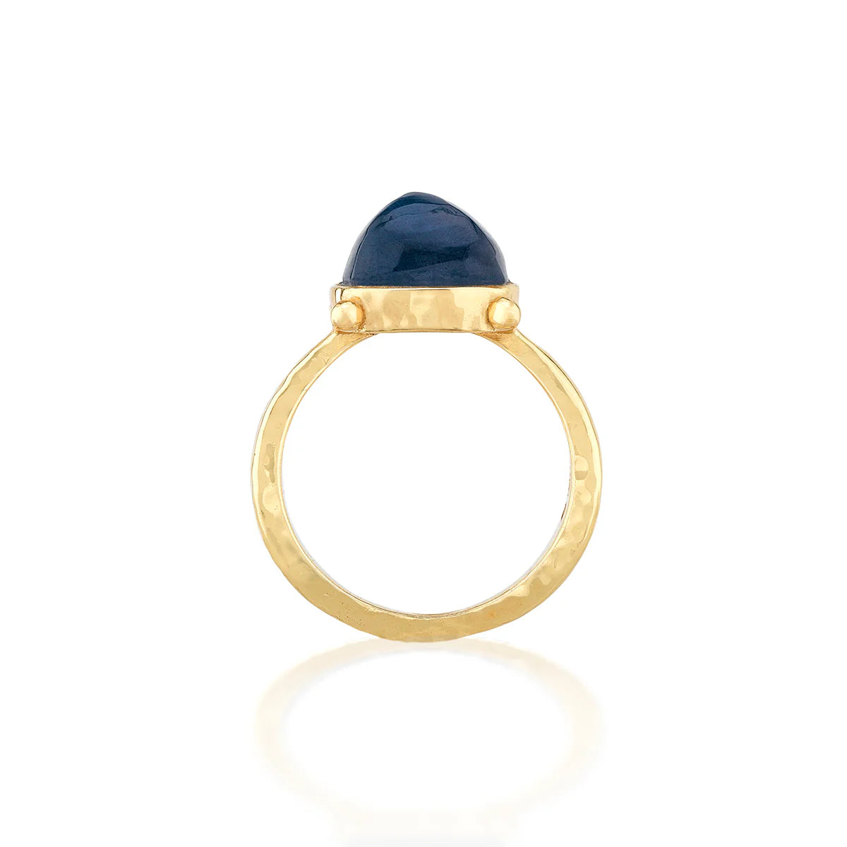 We believe every woman is a gem—multi-faceted and utterly unique. This ring places a luminous blue labradorite gemstone center stage, set in shimmering hammered gold for subtle splendor (because she deserves it!) Modern and elegant, wear this versatile piece in a stack or fly solo, from workdays to weekends, day to night.