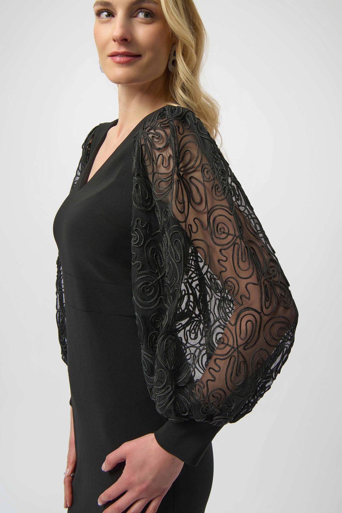 JOSEPH RIBKOFF SILKY KNIT & NOVELTY MESH SHEATH DRESS