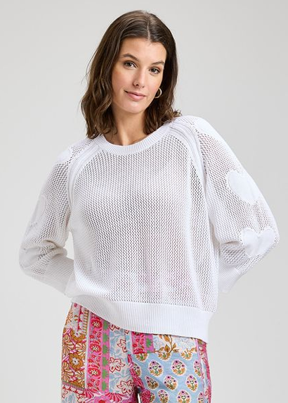 The Zaket & Plover "Heart on My Sleeve" Sweater is a playful, contemporary take on transitional knitwear. It blends a sporty silhouette with feminine, whimsical details.