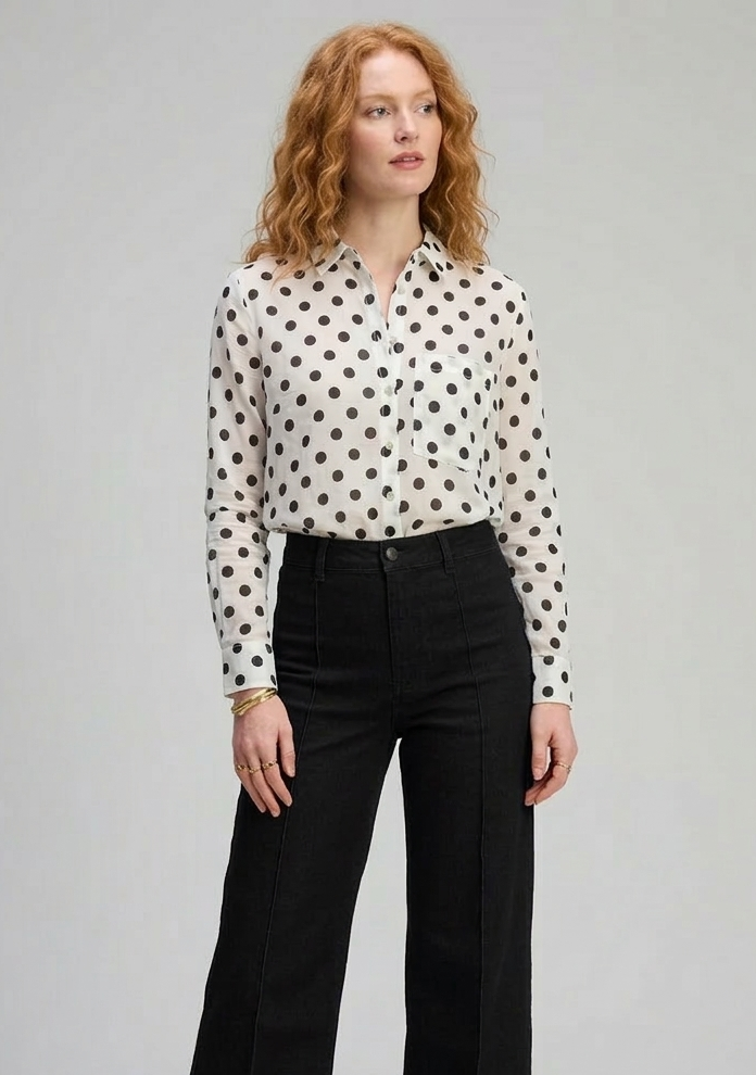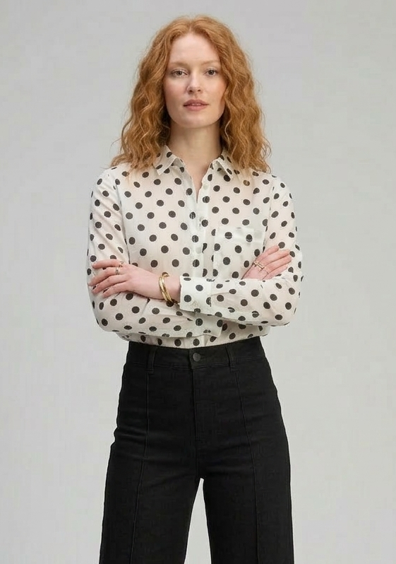 This Zaket & Plover Polka Dot Voile Shirt is a charming, graphic piece that brings a modern edge to a classic vintage-inspired pattern. Known for their light-as-air fabrics, this cotton voile shirt is designed for breathability and a soft, feminine drape.